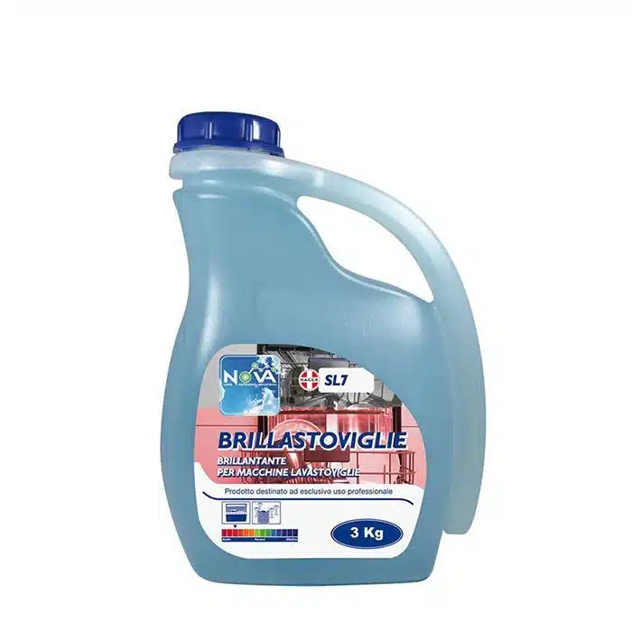 Brillastoviglie Per Lavastoviglie 3 Kg SL7 è un additivo liquido brillantante ed autoasciugante formulato per il lavaggio automatico delle stoviglie. Adatto per qualsiasi tipo di lavastoviglie, aggiunto nella fase di risciacquo mediante apparecchiature automatiche di dosaggio, rende le stoviglie brillanti e ne consente una rapida asciugatura. Di colore azzurro, a carattere acido, previene la formazione del calcare e non lascia aloni.