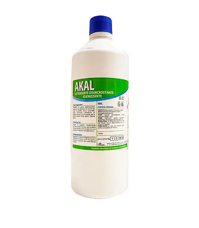 Detergente Disincrostante Igienizzante 1 Kg AKAL12 è adatto per la rimozione del calcare da superfici quali docce, bagni, ceramiche e acciaio inox. Adatto per la pulizia del WC e per strutture che devono riaprire per togliere lo sporco più ostinato. Detergenti ad uso professionale e domestico.