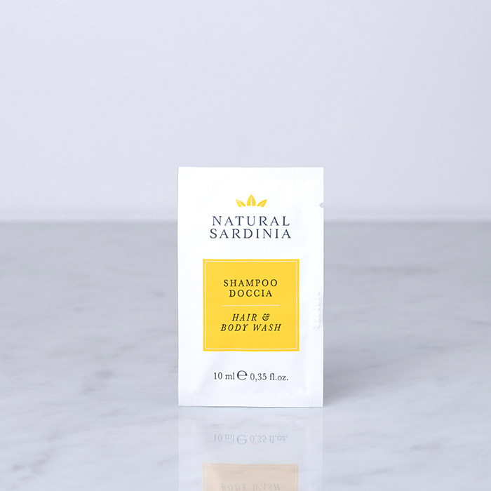 Natural Sardinia Doccia Shampoo Hotel Bustina 10 ml confezione monodose e monouso è la soluzione adatta ad ogni tipo di struttura ricettiva, sia Hotel che B&B e Casa Vacanze.