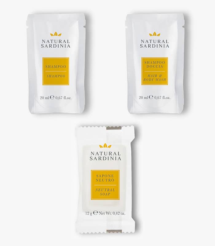 Esplora la nostra gamma completa di set cortesia Natural Sardinia e trova la soluzione perfetta per il tuo Hotel o B&B. Dai ai tuoi ospiti il regalo di una vacanza indimenticabile, arricchita dalla bellezza autentica della Sardegna.
